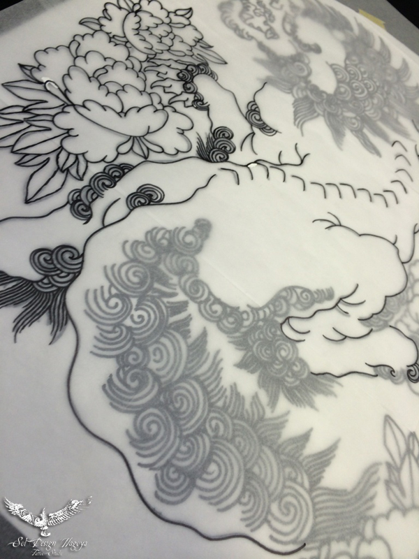 写真は新たにご依頼頂いたバックピースデザインの下絵です。